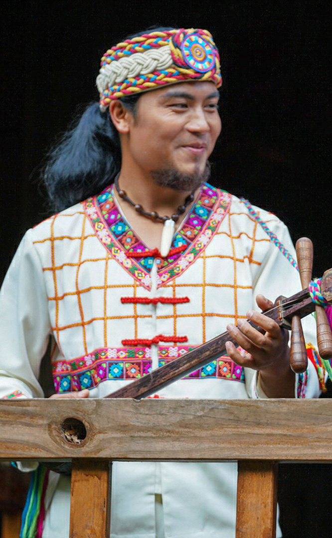 佤族人口約36萬,主要聚居在云南省瀾滄江南段以西的阿佤山區(qū)。佤族寨位于“翠漪洲”東南角。寨內(nèi)分布有茅草頂?shù)母蓹谑浇ㄖ?、牛頭廣場、神靈廣場、司崗里石雕以及糧倉等。牛頭廣場是佤族古老的剽?;顒訄鏊?,場正中的牛角為佤族的寨樁,廣場前的兩個石人分別為佤族的男性和女性祖先。神靈廣場表現(xiàn)了佤族萬物有靈、靈魂不死的自然崇拜觀念。場中兩個石人雕像分別為佤族最崇拜的“木依吉”和“阿依娥”。佤族木鼓舞節(jié)拍鮮明強烈,...